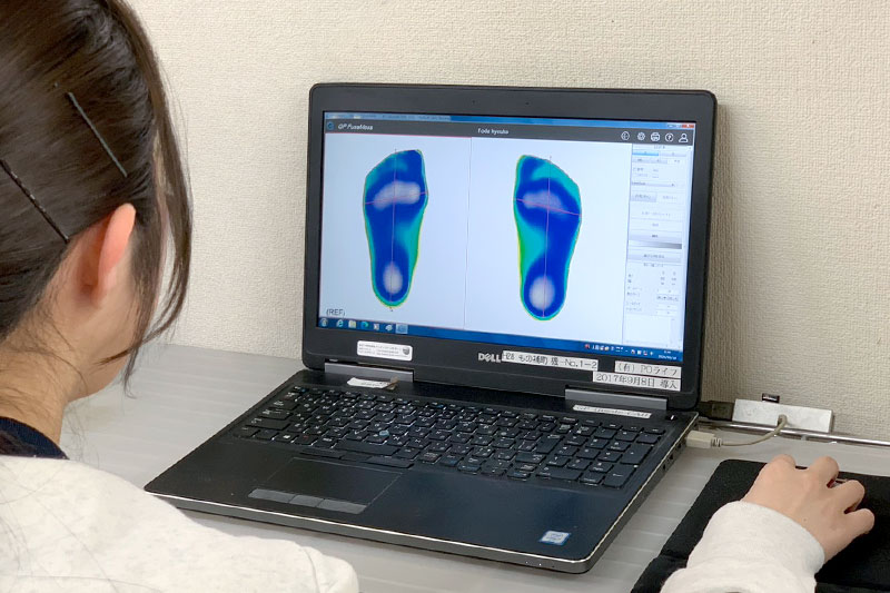 足の形や変形、荷重のかかり方を確認し、採寸・採型を行います。